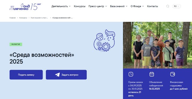Прием заявок на конкурс «Сфера возможностей» продлится до 30 октября 2025 года. Для участия нужно перейти по ссылке на сайт конкурса https://clck.ru/3NzJ7J и нажать «подать заявку». Все заполняется прямо на сайте, можно вводить данные постепенно, они сохраняются, ничего по почте дополнительно отправлять не требуется.