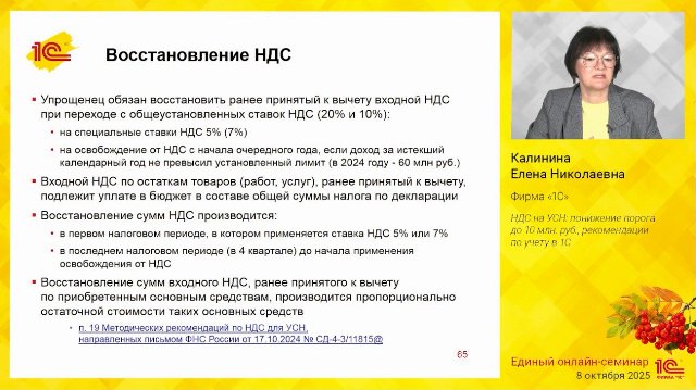 — НДС на УСН: понижение порога до 10 млн. руб., рекомендации по учету в 1С;