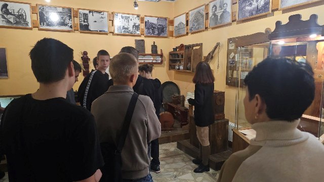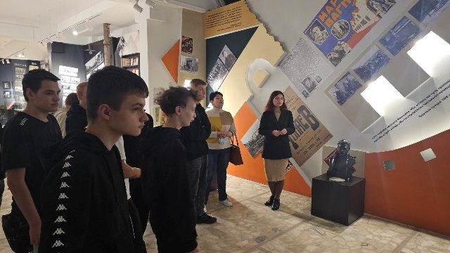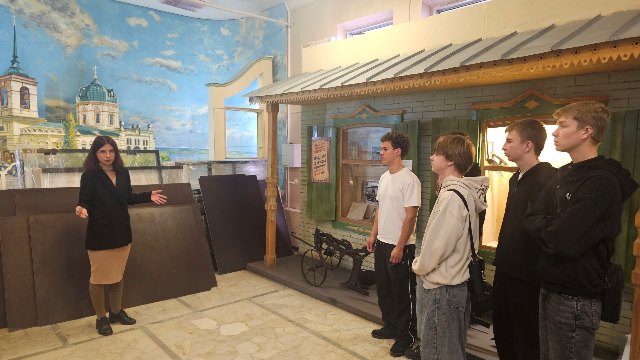 Для ребят состоялась обзорная экскурсия «Знакомьтесь, музей». Экскурсовод познакомила студентов с основными историческими вехами города Покровска-Энгельса, с его малороссийскими и немецкими страницами в истории. Внимание ребят привлекли подлинные документы, фотографии и артефакты, раскрывающие региональные особенности разных лет.