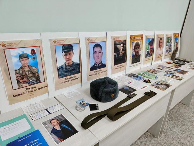 Некоторые подлинные предметы привезены выпускниками с линии боевого соприкосновения. Среди них образцы военной формы и защитной экипировки (ремень армейский летний, шапка зимняя), фрагменты и осколки боевых снарядов с памятными надписями. Предметы военной атрибутики, фотографии моментов боевых учений и мастер-классов по изготовлению браслетов выживания и маскировочных сетей волонтерами колледжа для бойцов СВО становятся яркими музейными экспонатами и привлекают внимание студентов и посетителей музея колледжа.