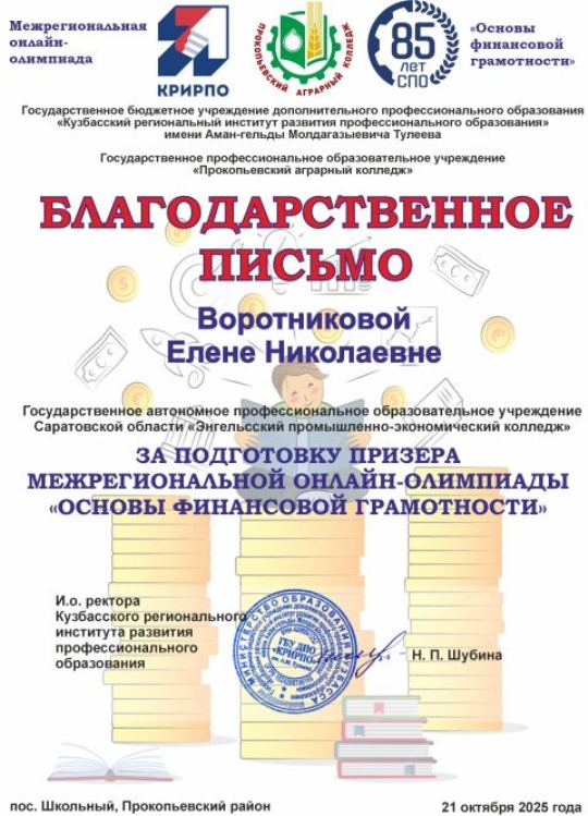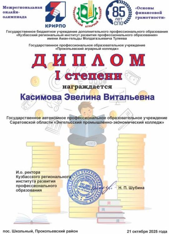 Подведены итоги Межрегиональной онлайн-олимпиады «Основы финансовой грамотности», посвященного 85-летию системы среднего профессионального образования, которая состоялась 21 октября 2025 г. в дистанционном формате на платформе Moodle.