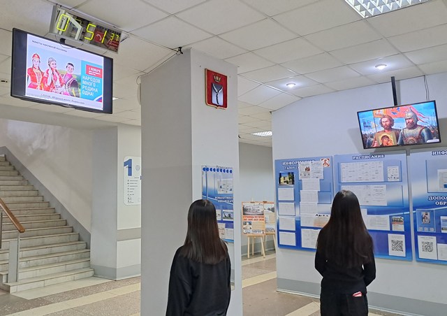 В период с 31 октября по 01 ноября 2025 г. в фойе колледжа на экранах информационного центра транслировалась мультимедийная презентация «Россия–Родина моя», посвящённая Дню народного единства.