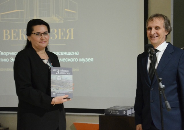 За многолетнее сотрудничество, за поддержку творческих идей и начинаний директором Энгельсского краеведческого музея Дмитрием Геннадьевичем Решетовым юбилейное печатное издание – десятый выпуск сборника научных статей «Музейные записки», было вручено Энгельсскому промышленно-экономическому колледжу.