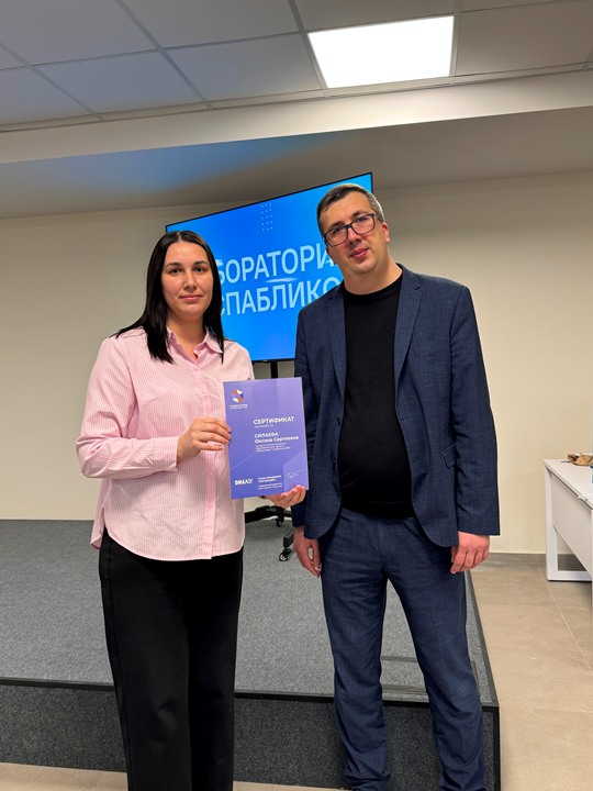 В завершении мероприятия руководитель ЦУР Сергей Блаженнов вручил сертификаты о прохождении программы образовательного проекта. Среди награжденных была и советник директора по воспитанию Оксана Сергеевна Силаева, которая отметила важность подобного обучения для роста эффективности работы с общественными пабликами.