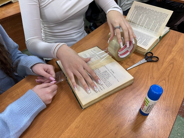 В рамках акции прошли мастер-классы по реставрации книг, проводимые совместно с участниками Советов Первых. Студенты научились восстанавливать книги из библиотечного фонда колледжа, что является важным навыком для сохранения знаний и культурного наследия.