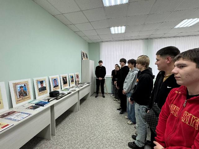 Педагог-организатор Ильина Наталья Анатольевна и советник директора по воспитанию Силаева Оксана Сергеевна совместно с Советом первичного отделения «Движения Первых» организовали для групп 1ТС125 и 2КС124 экскурсию по выставке «Герои моей малой Родины».