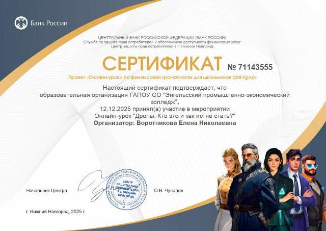 Сегодня для студентов первого курса экономического отделения прошёл важный и очень актуальный онлайн-урок от Банка России на тему «Дропы. Кто это и как им не стать?».