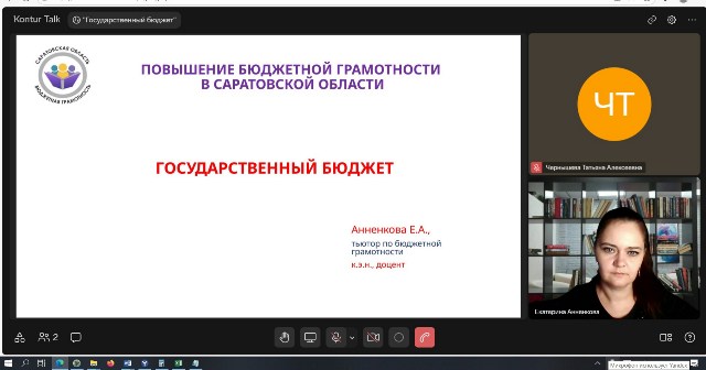 2 декабря 2025 года студенты группы 2КС124 специальности 09.02.01 Компьютерные системы и комплексы и 4ЭП122п специальности 11.02.16 Монтаж, техническое обслуживание и ремонт электронных приборов и устройств под руководством методиста, преподавателя Чернышевой Татьяны Алексеевны приняли участие в образовательно-просветительском мероприятие в рамках реализации проекта «Повышение бюджетной грамотности населения Саратовской области». Тема мероприятия: «Государственный бюджет».