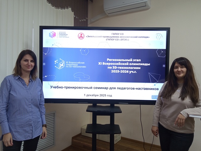 1 декабря 2025 года в рамках подготовки к проведению регионального этапа ХI Всероссийской командной инженерной олимпиады школьников по 3D-технологиям «Инженеры будущего: 3D-технологии» в 2025-2026 учебном году, на базе ГАПОУ СО «Энгельсский промышленно-экономический колледж» совместно с Ассоциацией организаций специалистов по инновациям в сфере образования при реализации проекта «Инженеры будущего: 3D-технологии в образовании» прошел учебно-тренировочный семинар среди педагогов-наставников, руководителей команд образовательных учреждений Саратовской области.