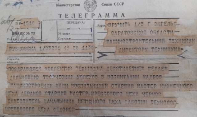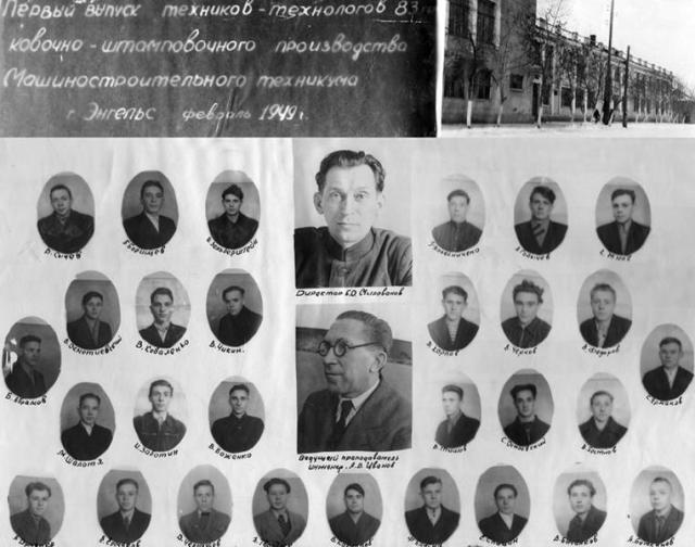 10 января 1945 год – машиностроительному техникуму от эвакогоспиталя №1306 переданы здания по улице им. Нестерова – учебный корпус и общежитие (Приказ по заводу имени Урицкого №11 от 05.01.45 г. и постановление Энгельсского горисполкома).