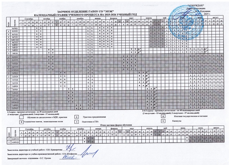 Календарный график учебного процесса на 2025 — 2026 учебный год (заочное отделение)